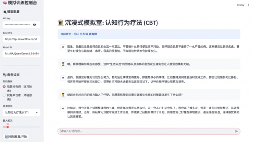 区别于市面上常见的通用聊天机器人,这款系统藏着 “专业玄机”:研发团队通过模型微调技术,将认知行为疗法等经典咨询流派的对话逻辑、沟通风格深度融入系统底层,不仅能实现通顺互动,更能精准识别“来访者”的情绪阻抗和自动化思维,让模拟咨询既有“真实感”又有“专业性”。
