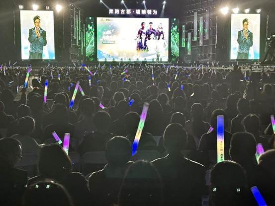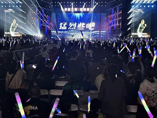 台上歌手精彩演唱,台下观众激情奔放。荧光棒一左一右、一前一后,汇成一片璀璨星海,大合唱的声音一浪高过一浪,“再来一首”的欢呼声、呐喊声此起彼伏,将现场气氛一次次推向高潮。