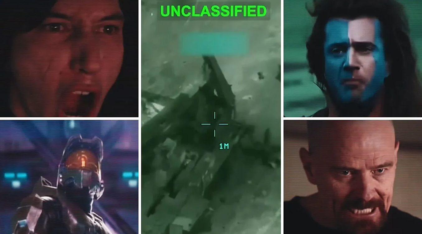反观美国,则无意走温情路线,其宣传视频并不试图讲述完整的故事,而是通过碎片化的画面刺激受众。在战争初期,美国官方发布的视频将体育比赛、电影和电子游戏中的片段剪辑在一起,再与军事袭击的真实画面相拼接,并常常配以劲爆配乐。美国使用的视频素材五花八门,从《海绵宝宝》等动画片,到《勇敢的心》《壮志凌云》等电影,再到《侠盗猎车手》《光环》等电子游戏。这些画面与美国政要的言论相契合。他们多次宣称要彻底摧毁伊朗的军事力量,同时又坚称美国“正迅速接近取得胜利的目标”。