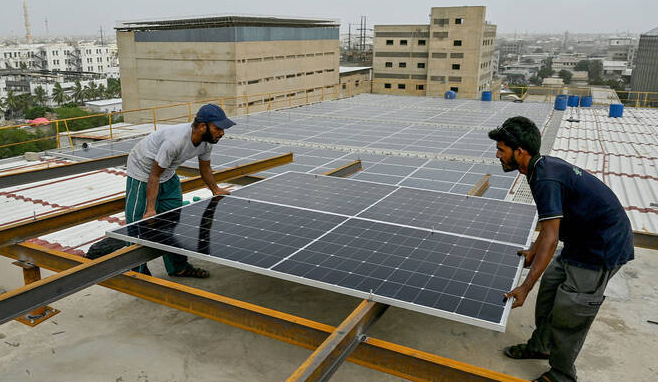 这类故事在巴基斯坦并不少见。从拉合尔、伊斯兰堡等城市上空俯瞰,会看到一道特殊的风景——高低错落的建筑屋顶上,布满蓝色太阳能电池板。即便是在乡村,太阳能板也随处可见,而这些光伏组件95%进口自中国。