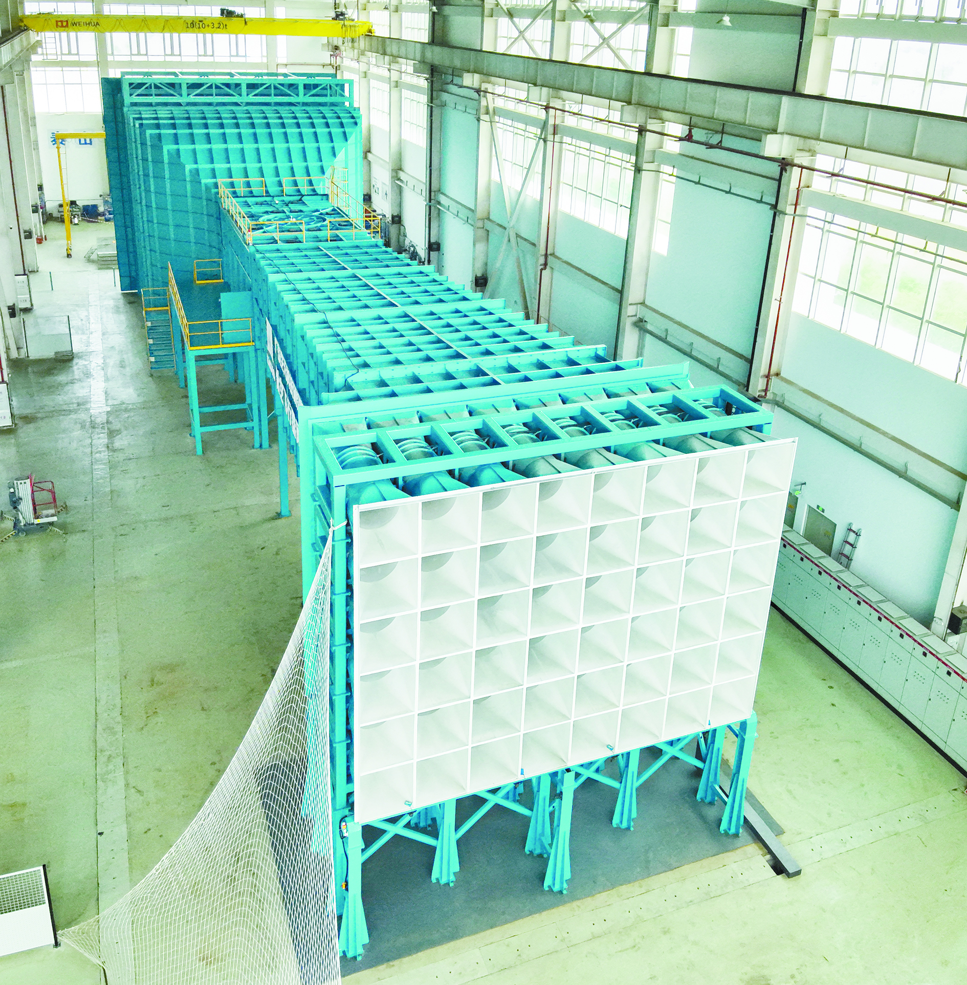 尚祖铭强调:“最大的技术突破在于实现了传统航空风洞与新型风墙系统的深度融合。这使得我们既能进行高精度的定量气动数据测量,又能有效模拟低空复杂多变的气流环境,对飞行器性能进行全面评估。”该风洞拥有8米×6米的庞大实验区,是目前国内可承载中型乃至中大型飞行器进行抗风性能测试的单体面积最大的工程化风洞设施,其风墙系统的规模在全球同类设施中也居于领先地位。