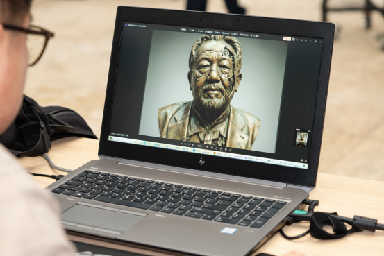 就在艺术家们捏着泥塑刀,对着模特细细琢磨神态、肌理的时候,旁边的电脑屏幕上,12组国内外顶尖AI算法也在同步“开工”:输入一模一样的模特照片,同样的“创作大师级雕塑作品”要求,算法只需要几十分钟就能生成3D数字模型,紧接着3D打印机就能把实体作品“打印”出来。