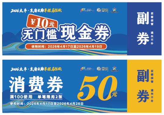 为充分释放体育赛事的消费拉动效应,赛事组委会联合定海区文旅、商务部门特别推出消费券活动。每位参赛跑者在领物时可专属领取一张“满100元减50元”定向消费券,可用于定海城区指定餐饮、酒店、文创商店等场景。此外,跑者和市民通过在小红书平台发布带有#2026东海云廊半程马拉松#话题的相关笔记,即可现场领取一张10元无门槛现金券,进一步激发了社交传播与线下消费的联动。两类消费券精准覆盖“吃住游购”各环节,让跑者在挥洒汗水之余,也能实实在在感受到定海的热情与诚意,体育赛事的“流量”正加速转化为文旅消费的“增量”。